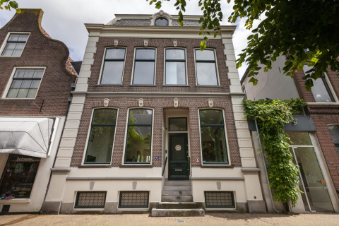 2e verdieping: entree, hal/gang met toilet (hangend) en vaste trap naar de zolder. Ruime, L-vormige woonkamer over de gehele breedte van de woning, met grote ramen, een open "kast" en toegang tot het balkon. Aan de achterzijde bevindt zich een slaapkamer. Moderne, nieuwe keuken v.v. kunststof aanrechtblad, een rvs spoelbak, inductie kookplaat, circulatiekap, oven, vaatwasser, koelkast en deur naar balkon. Inpandige badkamer met douche, wastafel, designradiator en raam.